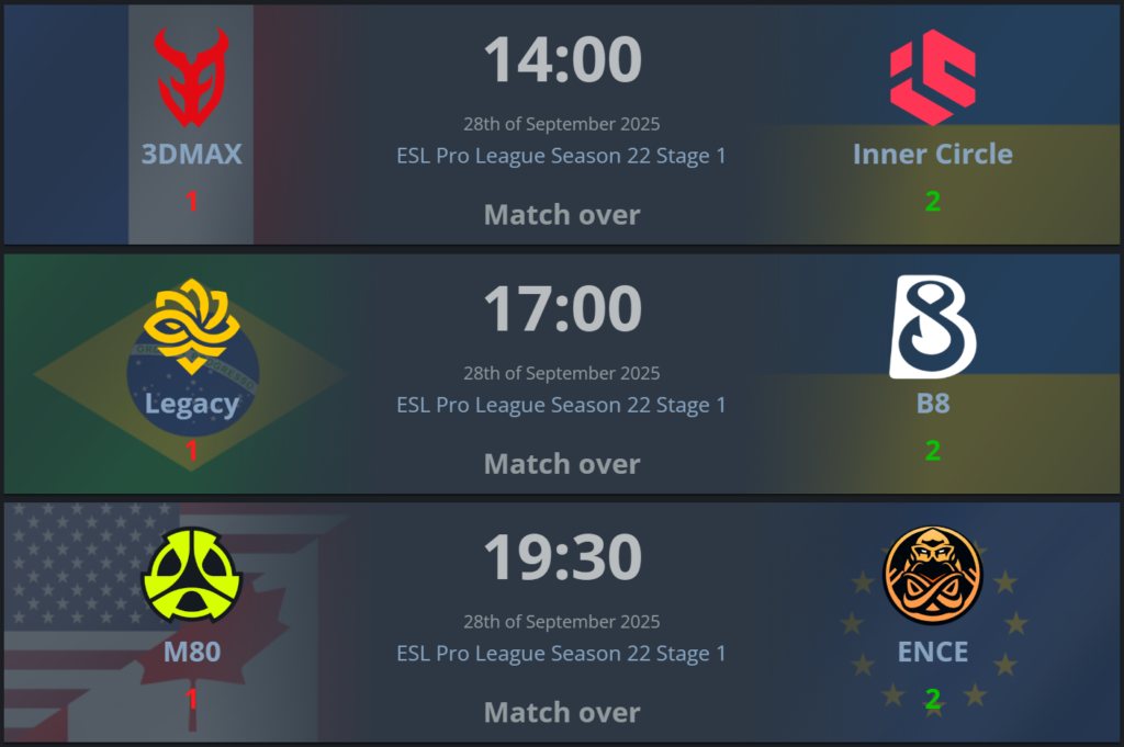 Таким чином, обидва українські колективи стартують на ESL Pro League з важливих перемог і вже на початку змагання заявляють про серйозні амбіції у груповому етапі. Свою перемогу також здобули й ENCE, де виступає українець sdy. У стартовому поєдинку вони зустрічалися з північноамериканською командою M80 і змогли виграли серію з рахунком 2:1.