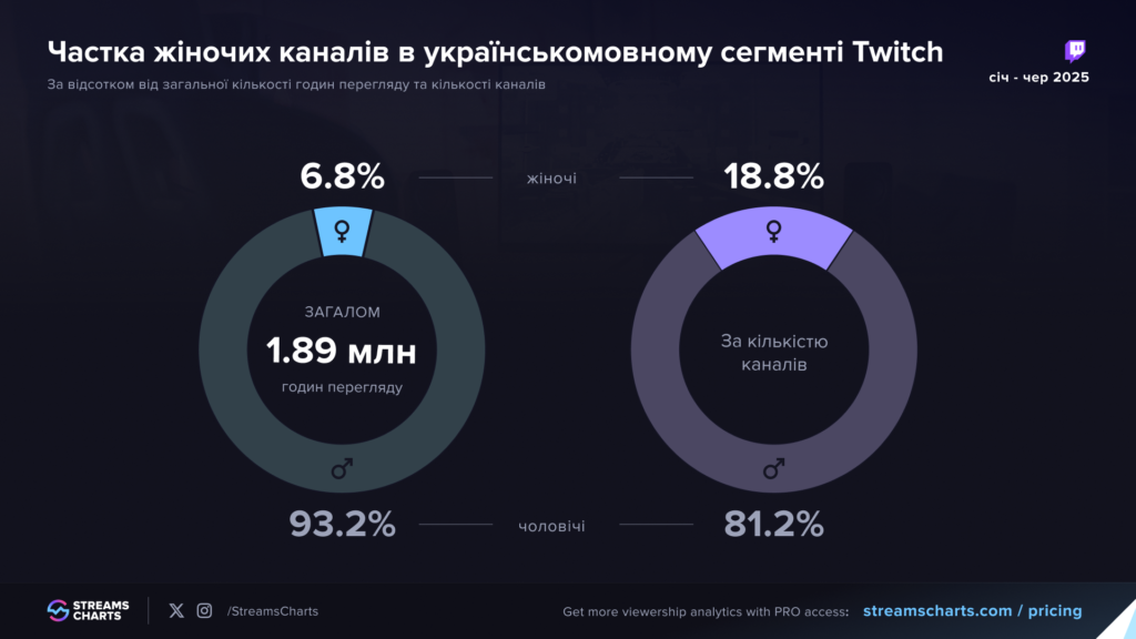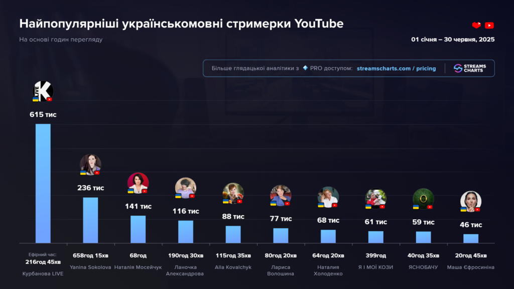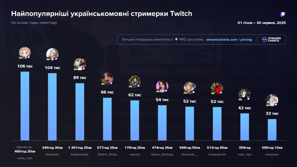 Аналітична компанія Streams Charts опублікувала дослідження про розвиток жіночого лайвстримінгу в Україні на Twitch та YouTube у першому півріччі 2025 року.