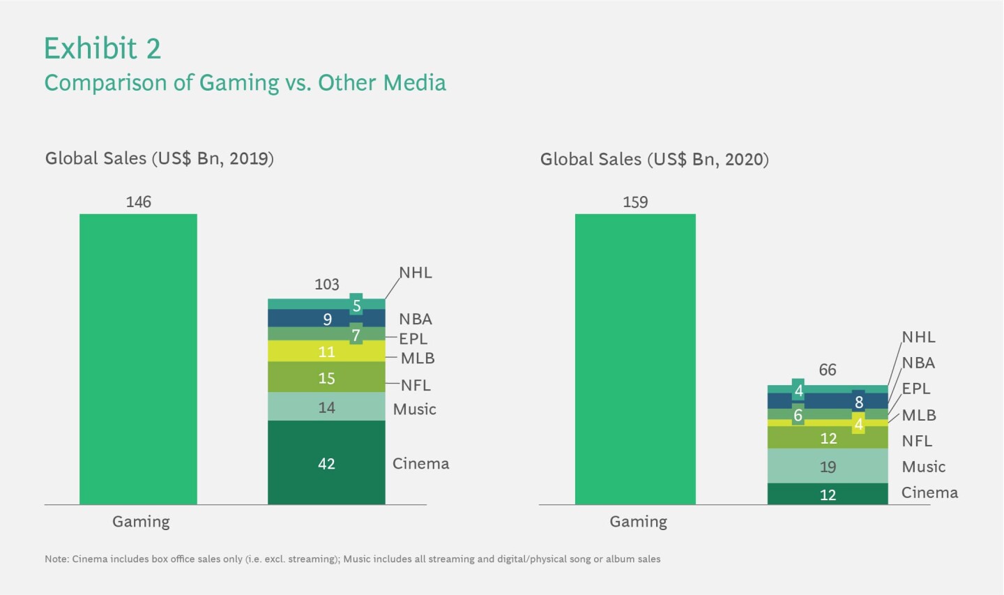 Newzoo прогнозирует, что к 2023 году годовой доход индустрии превысит $200 млрд. Это больше, чем совокупный годовой доход от кассовых сборов фильмов по всему миру, рынка музыкального стриминга и продажи альбомов.